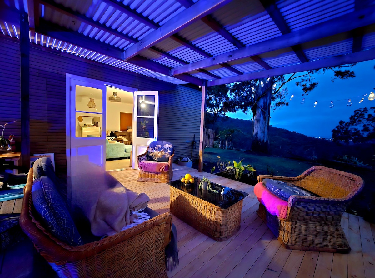 私たちは大人のみ(13歳以上のお子様は大人の同伴者がいる場合)のホスティングをしており、道路から200mのところにある自然の茂みの中の8.5エーカーのブロックで、野生動物が豊富でゴールドコーストのスカイラインのパノラマの海岸の景色が楽しめます。 M1からわずか数分のユニークなロケーション ペットOK(小型犬2匹まで、追加の清掃料金30ドル、猫不可)、エアコン、大きなプール、露天風呂・ジャグジー、NBN、Foxtel、Netflix、完全に独立したゲストハウス、簡易キッチン、独立したバスルーム 完全なプライバシーと静けさが待っています