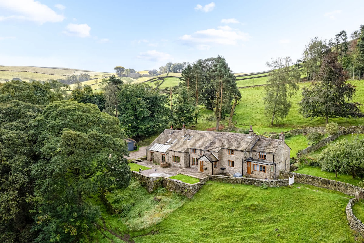 サドルワースの田園地帯、静かな門付き農家の集落にある、美しく改装された納屋(6名様まで宿泊可能)と居心地の良いキャビン(追加2名様まで宿泊可能)は、素晴らしい景色をお楽しみいただけます✶ 専用の薪焚きホットタブ、ファイヤーピット、プライベートな森と湖をお楽しみください✶ フレンドリーな家畜、ピグミーヤギ、そしてお子様が遊べるスペースもございます♡ 薪ストーブ、ボードゲーム、モダンなキッチン、スタイリッシュなキャビン。ご家族やご友人との滞在に最適です。遊歩道、村、パブ、M62、マンチェスター、リーズへのアクセスも抜群です。忘れられない思い出となる、ユニークな田舎の隠れ家です。