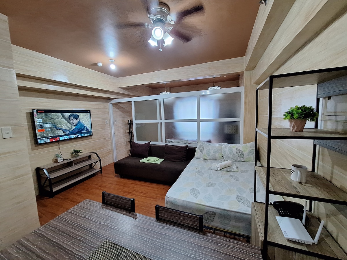 カップルやファミリーに最適な、居心地の良いロマンチックなタガイタイのユニット。クイーンベッド、柔らかいリネン、落ち着いたインテリア、必需品が揃ったコンパクトなキッチンをお楽しみください。スマートテレビと強力なWi-FiでNetflixをリラックスしてお楽しみください。ピクニックグローブ、スカイランチ、カフェ、レストランの近くにあります。清潔なタオル、温水シャワー、エアコンが含まれています。平穏な休暇、家族旅行、ロマンチックな旅行に最適です。タガイタイでのリフレッシュリトリートを今すぐ予約しましょう!