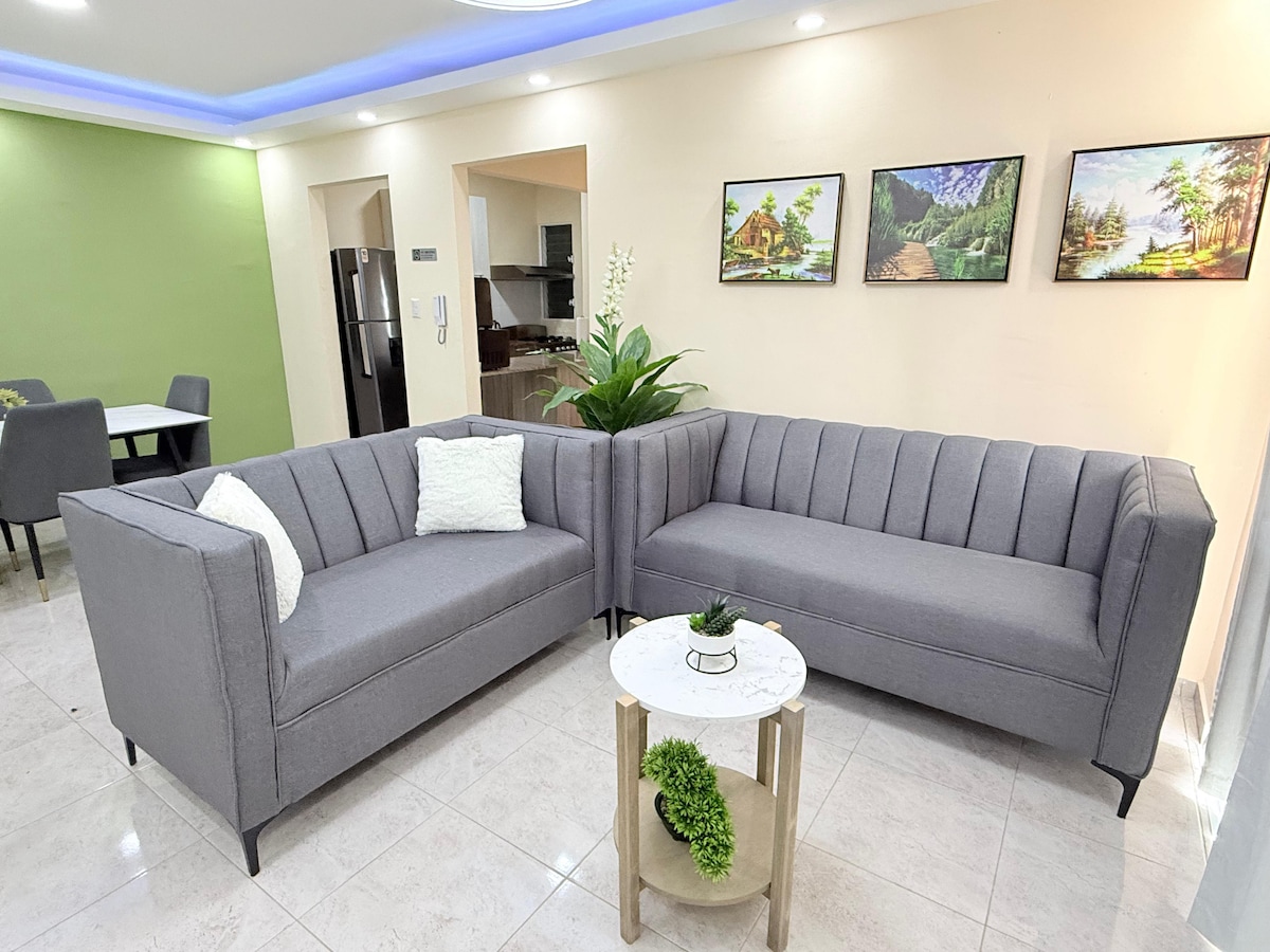 ラス・アメリカス国際空港からわずか16分の、静かなゲート付きコンドミニアムをお楽しみください。この3ベッドルームのアパートメントは、快適さとスタイルを求める家族連れや団体に最適です。 デジタルロックでアパートにアクセスできます。停電が発生した場合でも、バックアップインバーターがライト、インターネット、ファンを稼働させ続けるため、ご滞在が中断されることはありません。