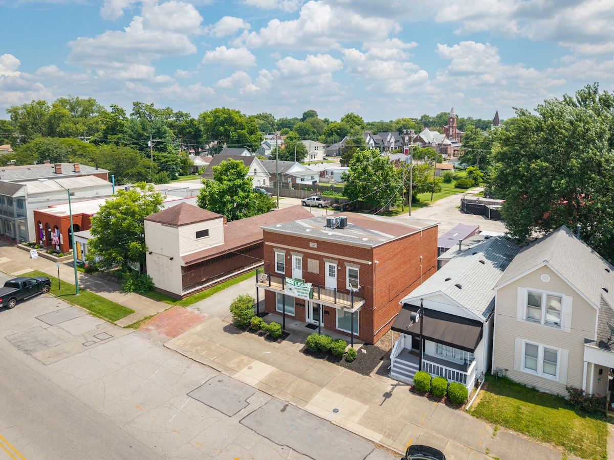 ロケーション、ロケーション、ロケーション!このロケーションに勝るものはありません! インディアナ州ジェファーソンビルのダウンタウン中心部に位置し、川までわずか半ブロック、ビッグ4ウォーキングブリッジ、パーラーピザ&ゲームヤードまで1ブロックです。徒歩圏内にはカフェ、レストラン、ショッピング、アンフィシアターもあります。高速道路へのアクセスが便利です。 この宿泊施設は、Louisvilleのダウンタウンからわずか数分のところにあります。 ルイビル国際空港から8.4マイル、KFC Yum Ctrから1.8マイル。 ここに泊まってください...気に入るはずです!最低2泊