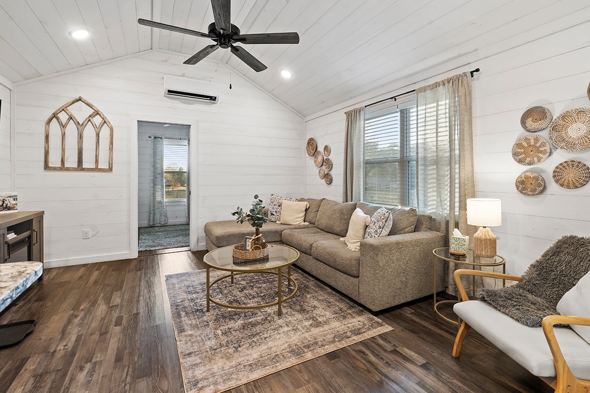 農場体験を楽しんだり、居心地の良いコテージで静かな休暇をお楽しみください! わずか192平方フィートで最大限の居心地を実現するように設計されており、休暇にぴったりの場所です。 2名様用に設計されていますが、追加のツインマットレスをご用意できます。 キッチンにはコンパクトな冷蔵庫/冷凍庫、電子レンジ、コーヒーメーカーが備わっています。 暖炉の隣にあるクイーンサイズのベッドは、映画を見たり、本を読んだり、コーヒーを飲んだり、夕日を眺めたりするのに最適な場所です。 お会いできるのを楽しみにしています!