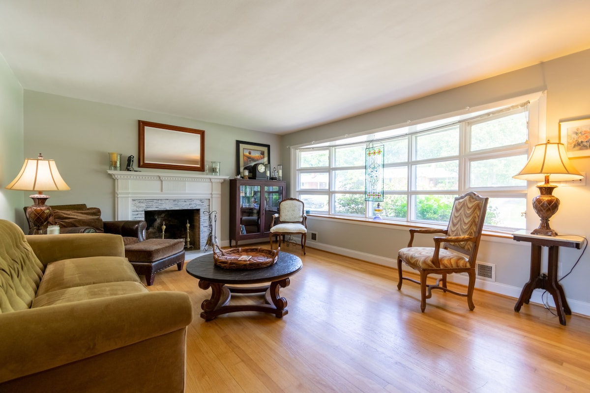 アメリカン・ドリームへようこそ!私たちの家は、首都の絵に描いたような郊外にあります。1階(2000平方フィート)には、ベッド2台、バスルーム2つ、専用アクセス、そしてお客様専用のアメニティを完備した広々としたスイートがあります!合計4名様まで宿泊可能です!1.6エーカーの庭は、静かなラウンジからサッカーの試合まで、あらゆることに最適です。ご家族やご友人グループでお越しの場合は、ぜひお越しください!