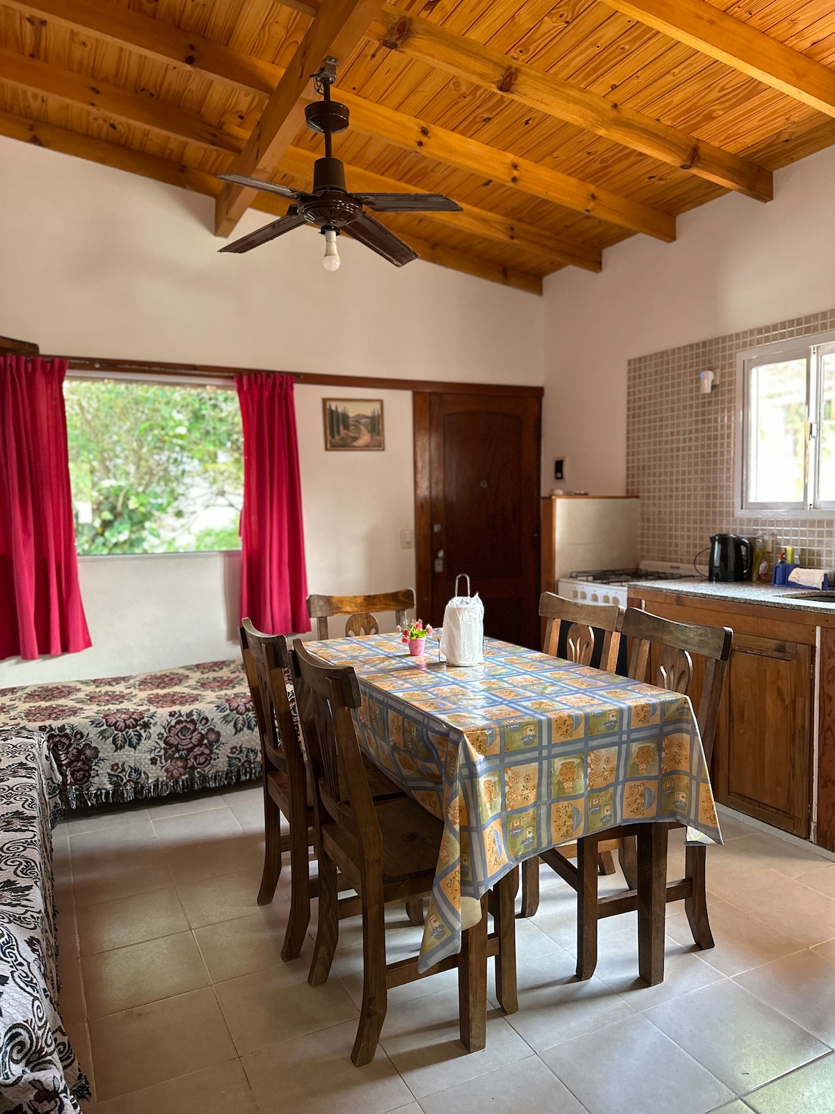 Espacio privado, rodeado de verde, diseño para 2 personas, con todas las comodidad y a 4 cuadras de la playa. Habitación con cama Queen side de 1.80, cocina totalmente equipada con microondas, pava eléctrica, tostadora, cafetera, cocina con horno y heladera con freezer y vajilla. Amplio baño de diseño cuidado. Tiene aire acondicionado frío calor, ventilador, tv con cable, wifi, patio, parrilla, estacionamiento cubierto y porche. Incluye el servicio de blanco. No se aceptan mascotas.