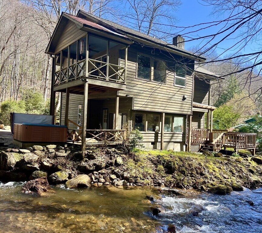 美しい3階建ての山の家で、オープンベルベデールタワー、南部スモーキー山脈の360度ビュー、複数のデッキ、ビリヤードテーブル、フーズボール、たくさんのゲームが楽しめます。 フルキッチンは、暖炉のある会話エリアとダイニングエリアを備えた素晴らしい部屋に面しています。 森、小川、自然に囲まれた創造力に満ちた場所です。 ポーチのブランコや、専用バルコニーのアディロンダックチェアで、コーヒーを飲みながら、自分の考えを巡らせましょう。 「スモーキー山脈での息抜き」の間、あなたは畏敬の念を抱くことでしょう。