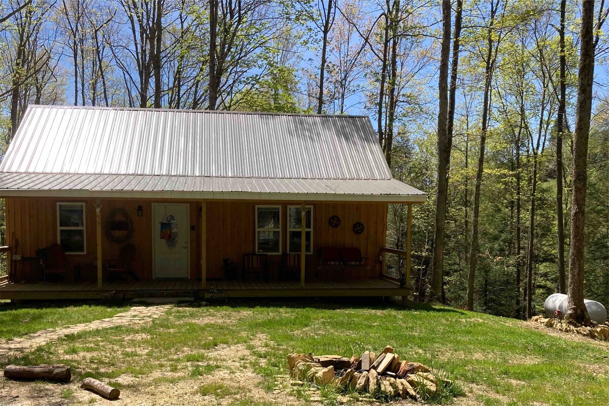 Cozy cabin situated on the edge of our 200 acre farm in the Mountains of West Virginia along a two lane county road. Upstairs combination living room/bedroom. Bathroom is also upstairs. Kitchen/dining is downstairs along with fireplace. -Sleeps up to 4 in full bed and futon sofa. -Enjoy wildlife viewing. -ATVs welcome. -Located one mile from the Buckhannon River offering excellent spring trout fishing. -Pet friendly (dogs only, fee required)