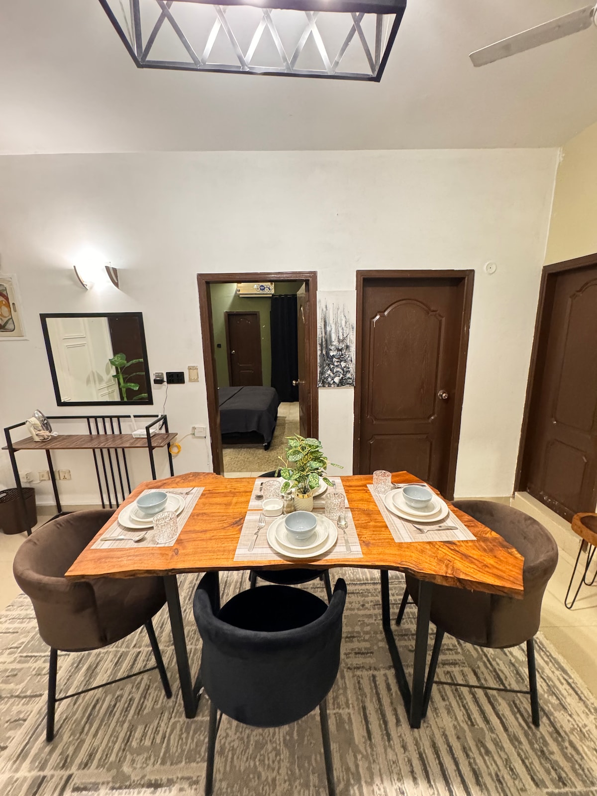 The Annexe @ Wirsoへようこそ カラチのDHAフェーズ6にあるブハリ商業地区の近くにある、美しくデザインされた3500平方フィートの3ベッドルームのバンガローで、真の贅沢を体験してください。快適さとスタイルを念頭に置いて厳選されたこの静かな隠れ家は、5つ星ホテルの雰囲気と家の温かさを兼ね備えています。 数日間の滞在でも長期滞在でも、Wirsoは市内で最も高級なエリアの1つにある、安全で平和で設備の整った空間を求める家族に最適です。