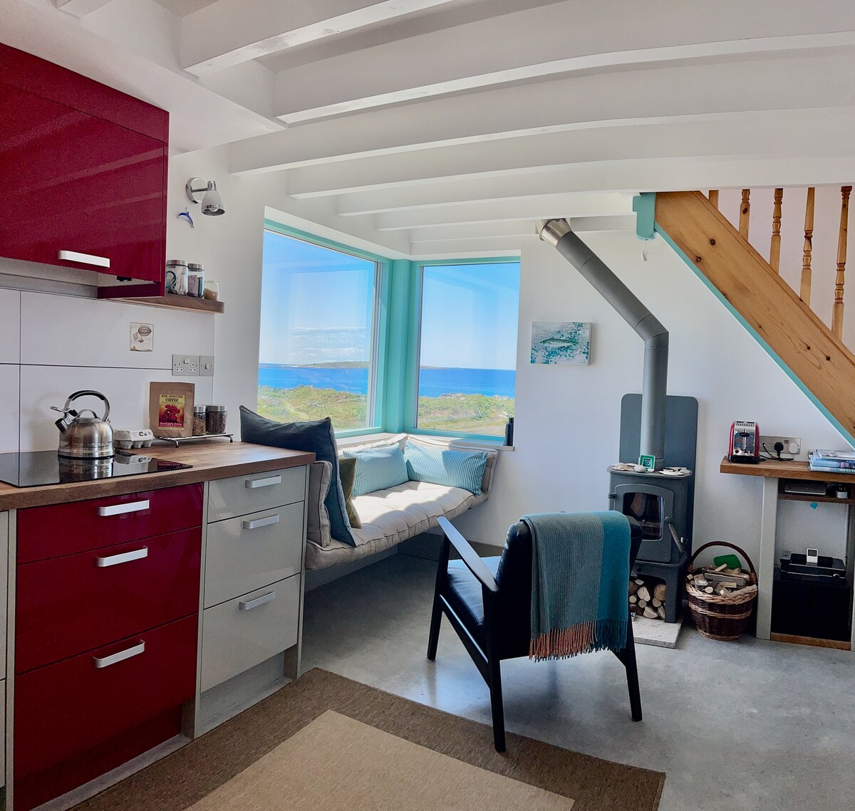 Little Sea House has spectacular sea views on the wild Atlantic coast in Connemara. Resting peacefully at the end of a private lane, you’ll hear only wind, waves and birds. Relax and watch the light change over the sea, watch the sunset and the stars appear in a sky without light pollution. You have access to the shore with an abundance of scenic walking and beautiful beaches nearby. You are 3 km from the Wild Atlantic Way and near Mace Head which has the cleanest air in Europe.