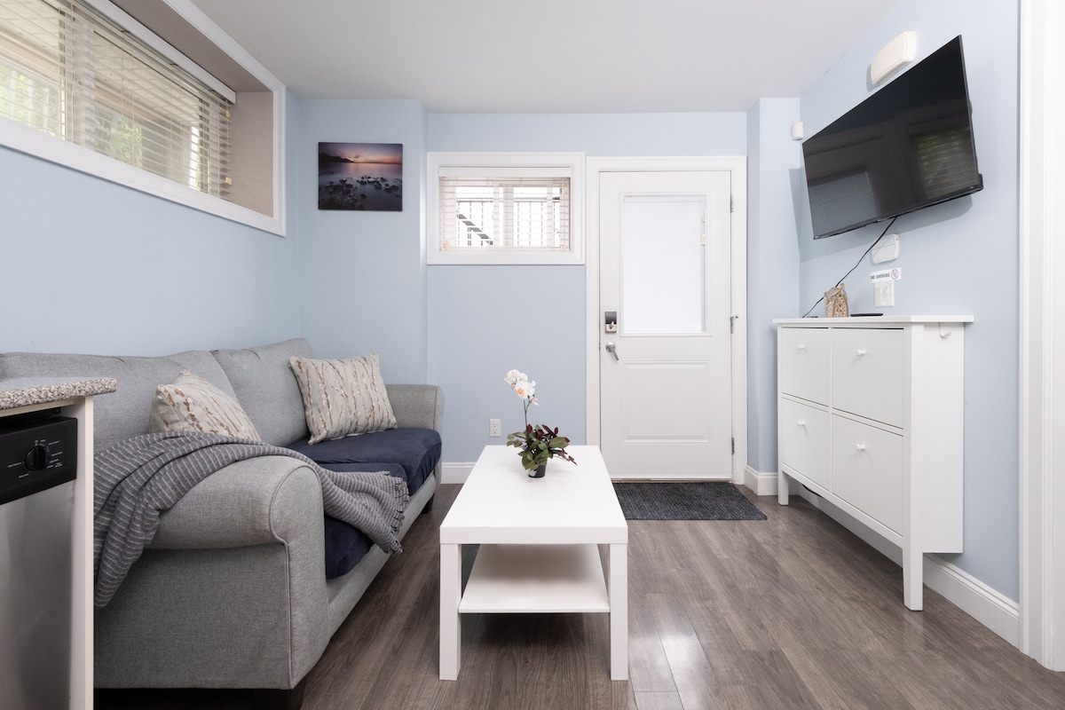 築10年のエネルギー効率の良い家です。貸し出しは地下室で、クイーンベッド、メモリーフォームマットレスのソファベッド、広々としたバスルーム、洗濯機・乾燥機、バスルームとランドリー用のスターターキット、床暖房、Xfinity Wi-Fi/テレビ、食器洗い機、Keurig、Crockpot、パントリースターターキット(オイル、スパイス、食器、鍋、フライパン)、駐車スペースを備えた美しく家具付きの1ベッドルームアパートです。 3か月前から予約可能です。 家族の健康に深刻なリスクがあるため、動物同伴禁止ポリシーがあります。状況はAirbnbによって承認されています。