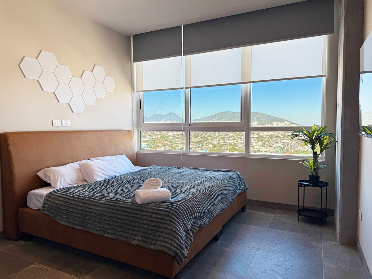 ✨ Experience Monterrey from Above 🌆 Relax in our modern 2BR/2BA apartment in San Pedro with stunning panoramic views. Two queen beds, 2 full bathrooms, fully equipped kitchen, A/C, fast WiFi, washer-dryer, parking & 24/7 security. Perfect for business, medical or leisure trips: minutes from top hospitals, Showcenter, shopping centers and the best restaurants. Ideal for short or long stays, blending the comfort of home with the boutique experience only San Pedro can offer.