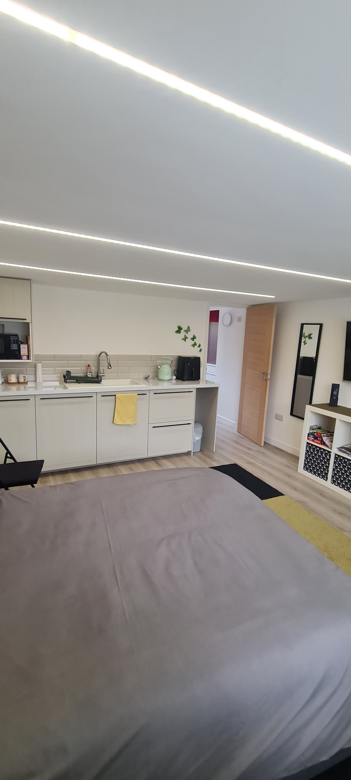 こんにちは!私たちの家は、ブリストル市内中心部から徒歩わずか15分の、サウスビルの活気に満ちたカラフルなエリアにあります。 サウスビルはブリストルでもとても人気の高いエリアで、ヨーロッパ最大のストリートアートフェスティバル「アップフェスト」の本拠地でもあります。 宿泊施設自体は私たちの住まいの一部で、専用の入り口があります。 中には、明るく広々としたベッドルームとシャワールームがあります。 地下には、キッチン付きのラウンジエリアがあります。