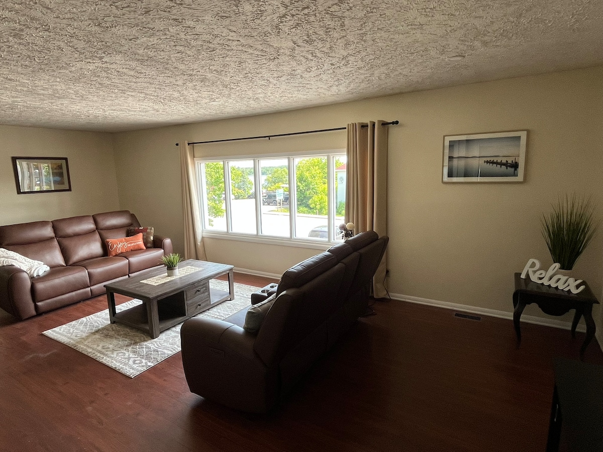 レンフルーの中心部に位置し、メインストリートのショッピング、レンフルーフェアグラウンド、地元のトレイルシステムまで徒歩圏内です。 この1階の1ベッドルームアパートには、キッチン、独立した玄関、車道があり、1台分の駐車場があります。 小さな2ピースバスルームと小さなシャワー(キャンピングトレーラーにあるものと同じくらいの大きさ)も、すべてユニット内にあります。 リビングルームのソファも引き出して追加の寝室にできます。 キーレスエントリーによるセルフチェックイン。 清掃料金はかかりません!
