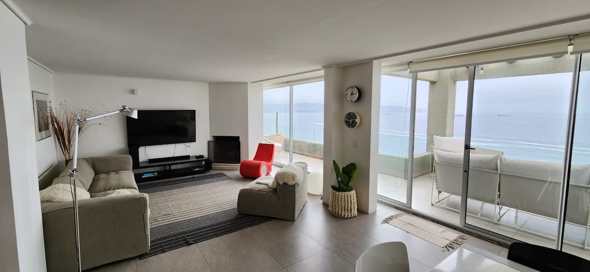 この複式フラットはレニャカビーチの目の前、3番目と4番目のセクターの間に位置し、ビーチとバルパライソとその周辺を180度見渡すことができます。 この複式フラットは、光がたくさん入る広々とした空間が特徴です。 家具が完備されており、すぐに楽しむことができます。 この複式フラットには、65インチ薄型テレビ、光ファイバーWI-FIインターネット、設備の整ったキッチン、バーベキュー設備が備わっています。 また、専用駐車場2台分もあります。