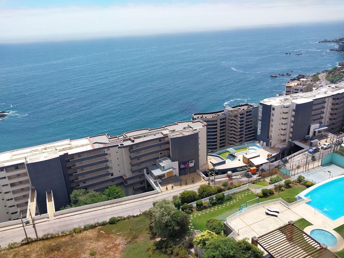 私のアパート(100%電気)は、新しくモダンな装飾で快適で、完全に設備されているので、自宅のように感じることができます(インターネット、WiFi、Netflix、ケーブルテレビ)。 主要な観光スポット、レストラン、商店街に近いです。建物には屋外プール、ジム、ランドリーセンターがあります。駐車場もございます。コンコン、ビニャ・デル・マールの中心部、バルパライソ行きのバス停がすぐそこです。