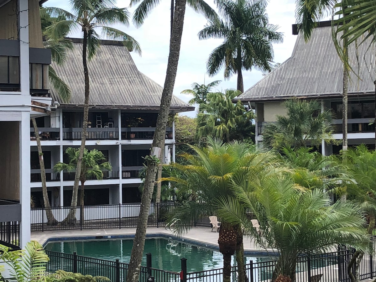 「エアコン」 このアパートは、ダウンタウンからわずか数分、ビーチから1マイルのヒロの中心部に位置しています。アパートには、クイーンサイズのマーフィーベッド、フルサイズのキッチン、設備が充実しており、大きな机があります。仕事に最適です。アパートにはプールを見渡す専用バルコニーがあり、屋外ダイニング用のテーブルがあります。敷地内には広い駐車場があり、無料で照明が良く点灯しています。素晴らしいユニットと最高のロケーションです。