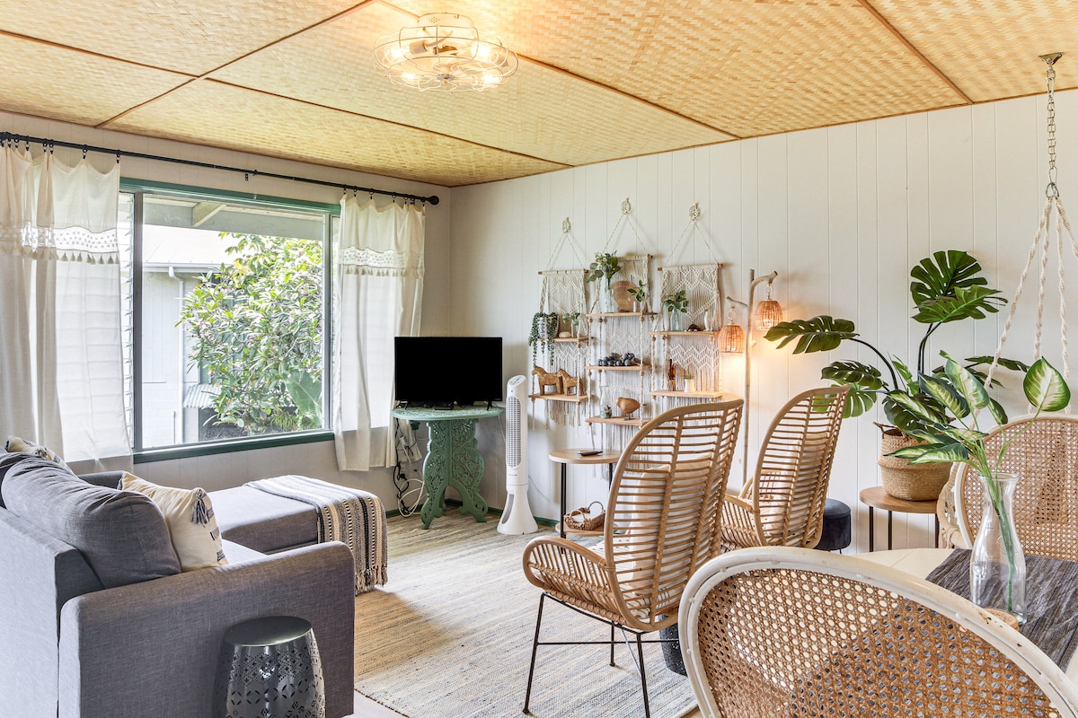Happy Honu Oasisは、落ち着いた雰囲気で、エアコンがあり、ビッグアイランドの冒険にぴったりのロケーションです。 このサーフシャックスタイルのワンルームからは、ヒロ湾、メリーモナークフェスティバル、すべてのショッピングやレストランに近いです。 マウナケア山の景色を眺めながら、ラナイでモーニングコーヒーをお楽しみください。 この物件はワイロア州立レクリエーションエリアとアートセンターに隣接しており、ヒロビーチまで車ですぐです。 公園でヨガをして1日をスタートさせたり、プールを楽しんだりしましょう。 大人2名様または小さなご家族に最適です。