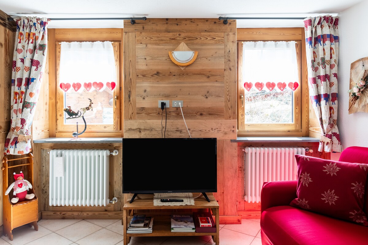 グラン・パラディーゾとセント・ウルスの草原の息をのむような景色を楽しめる、居心地の良い明るい家です! 室内の壁は木材で完全に覆われており、素敵な家具とタイル張りのコンロは、山のロッジの典型的な温かく親しみやすい雰囲気を与えてくれます。 屋外では、プライベートガーデン(テーブル、ベンチ、デッキチェアを備えた)でリラックスして、早朝から午後遅くまで太陽を楽しむことができます!