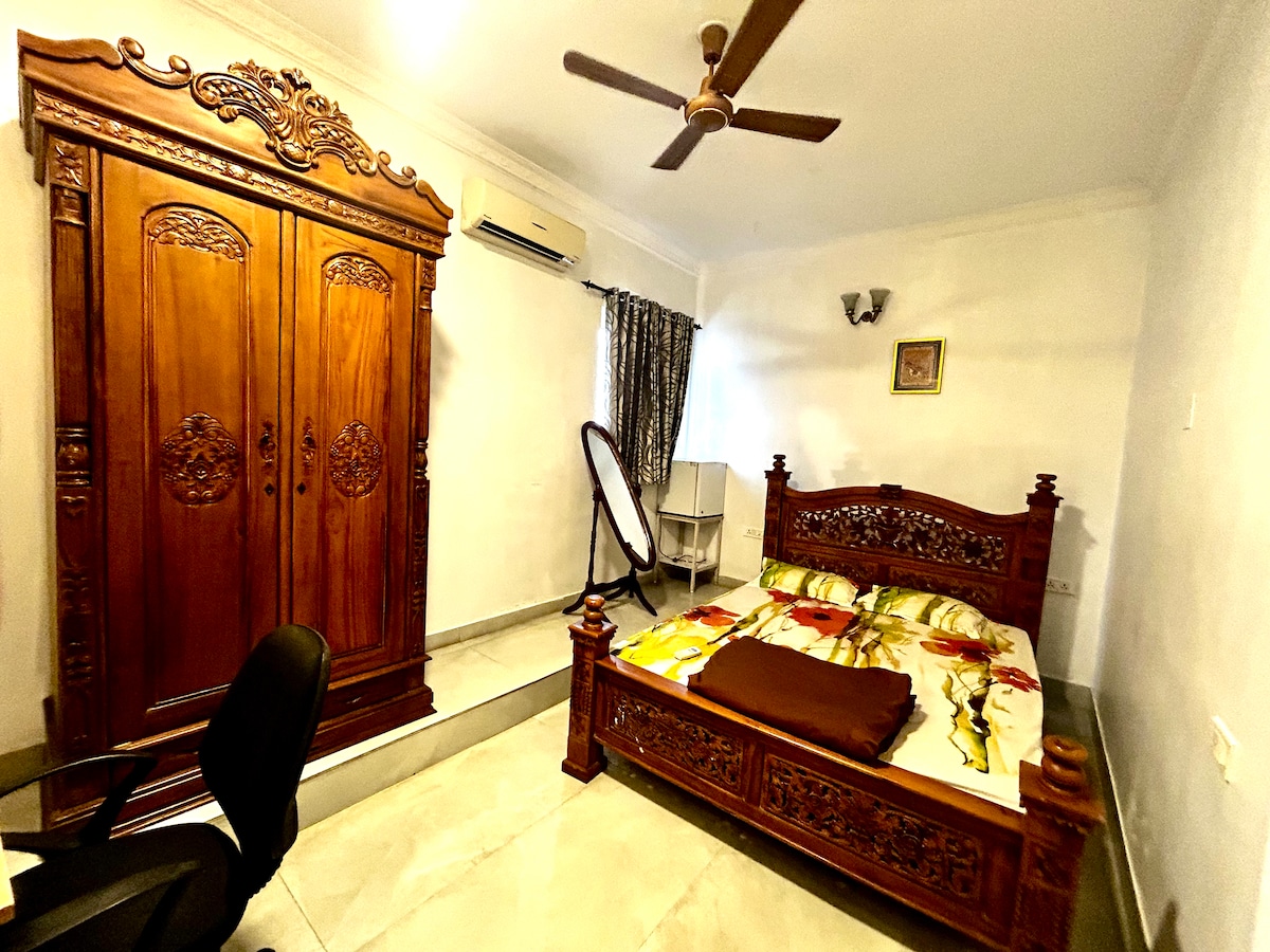 こちらの広々とした静かなお部屋で、日常の心配事を忘れましょう。これは同じ建物内の4番目の物件で、周りに木々があるため涼しい場所で、300エーカーの森林大学を見渡すことができます。近くにはベジタリアン、ノンベジタリアン、中華料理のレストランがあり、徒歩圏内です。スーパーマーケット、500メートル以内にATMがたくさんあります。UBER EAT&その他のフードデリバリーサービスが利用可能です。 階段のみで、エレベーターはございません。すべてのドアや窓に蚊帳が取り付けられています。 家族や女の子にも安全です。 レビューをご覧ください。複合ゲートは午後10時30分に施錠されます
