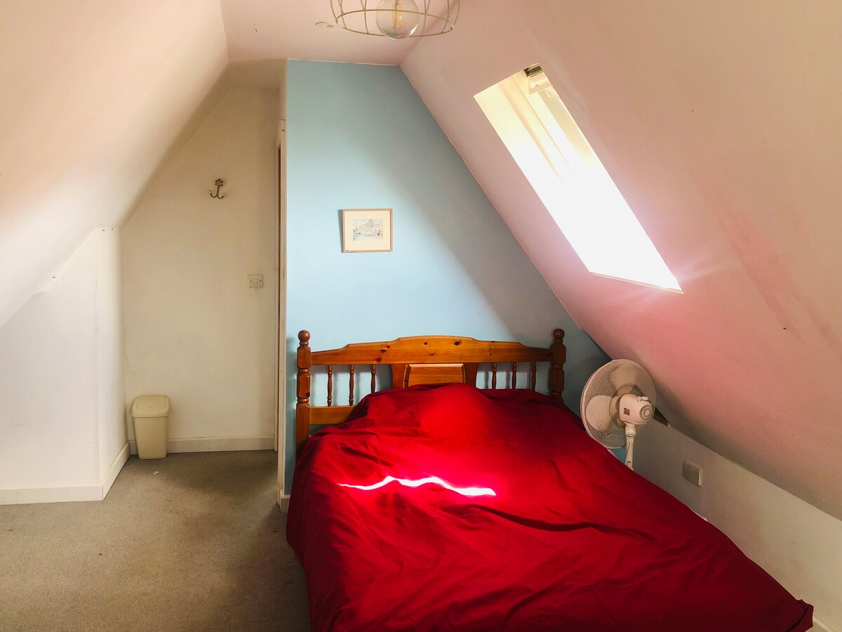 庭にある私のキャビンへようこそ。 キャビンへはサイドゲート/庭からアクセスできます。 ダブルベッド1台で2名様用です。 家には、専用のシャワールーム/トイレとキッチンエリアがあり、便利です。 キャビンはゲームルームでもあり、ゲストは卓球、テーブルフットボール、ダーツボード、ゲームをご利用いただけます。 家のすぐ外の道路に駐車場があります。