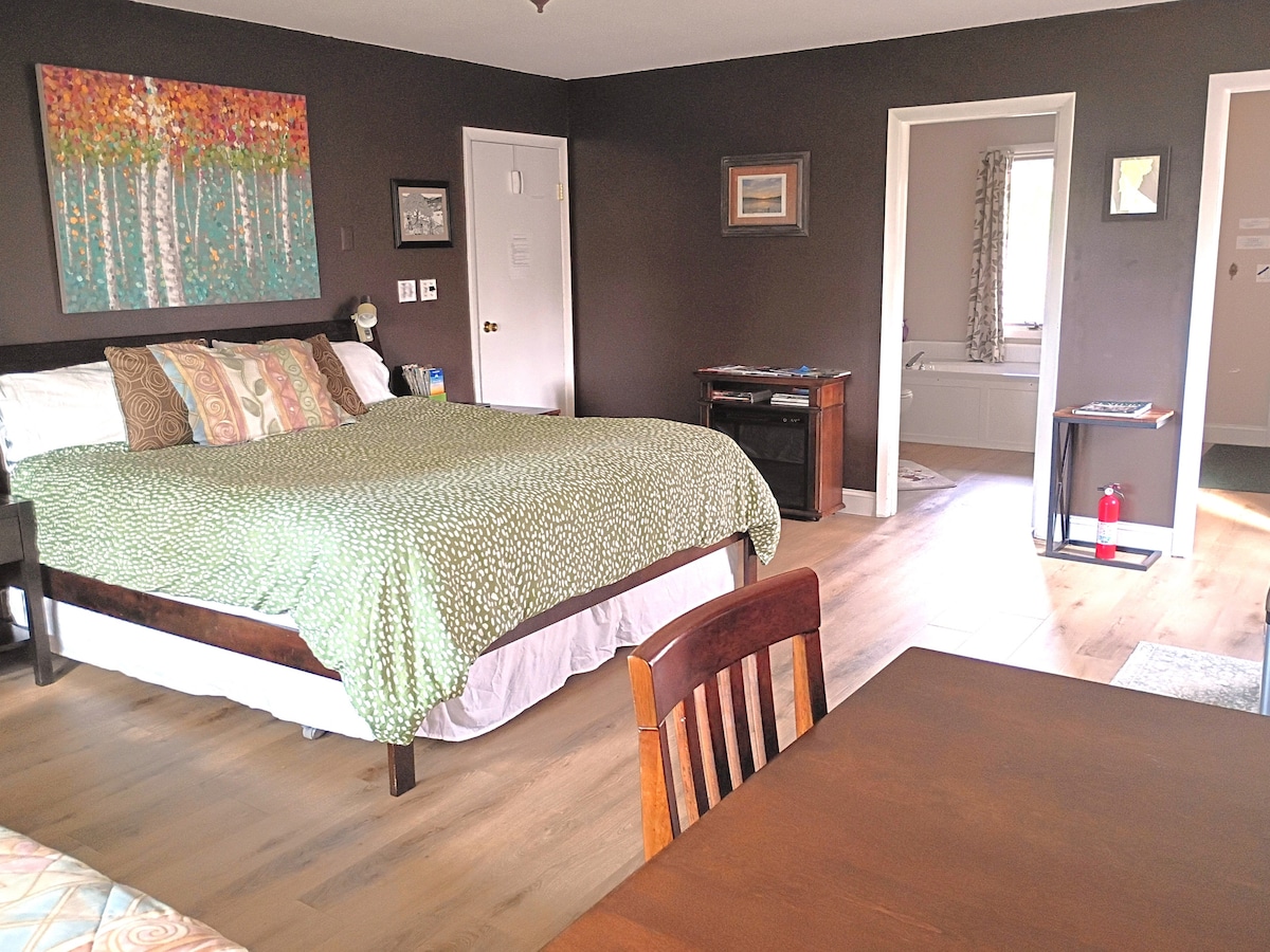 You'll love it here! Since 2021, the Chocolate Room has delighted travelers seeking a quiet, private escape. Lose your tension with a luxurious pillow-top king bed and a cozy Jacuzzi tub. Enjoy easy walking access to lake, parks, woods trails, the bike path + a private neighborhood beach, just 15 minutes from downtown Burlington or Winooski. There's easy off-street parking, fast wifi and a big grassy yard for dogs. (We ❤ pets!) Coffeemaker, breakfast nook, locked garage for your gear.