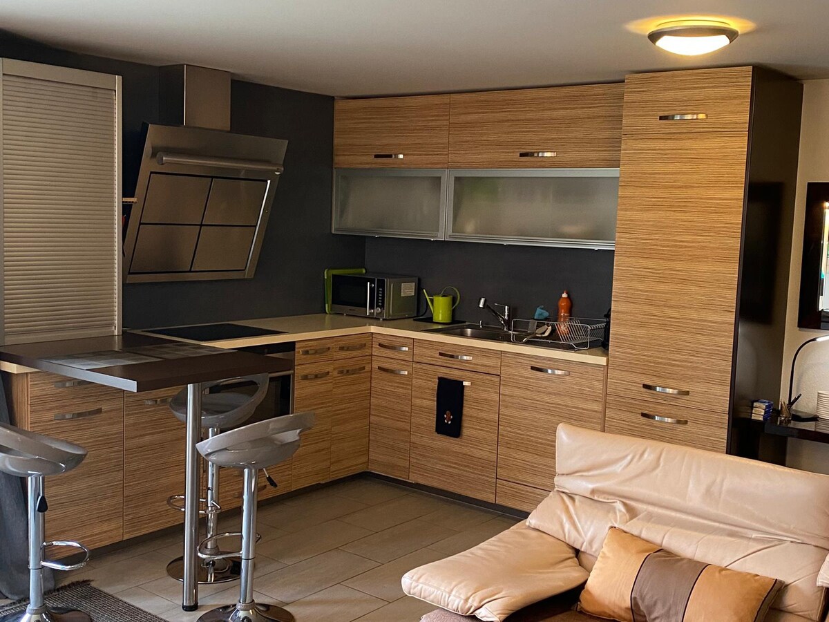 ユニークな環境にある個性的なアパート。高級ヴィラの1階の静かな場所にあります。独立した入り口。森と15x3.5メートルのプール/ナットコーナー(5月中旬から9月中旬まで温水)のユニークな景色を眺めることができます。 レマン湖のビーチから車で約10分、ジュネーブから15 km、中世の街イヴォワールから30分、エビアンから45分です。1人または2人のお子様連れのカップルに快適にご宿泊いただけます。