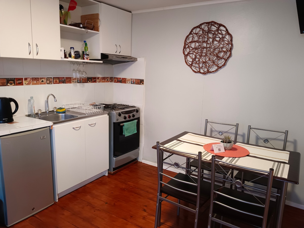 Minutes from Quintay & Tunquén beaches, 1.5 hour drive from Santiago, lies this rare find perfect for couples looking to chill & have fun. Your reservation includes the private guesthouse, use of outdoor hot tub, bbq area, parking, and own entrance. It's the perfect place to recharge, celebrate a special occasion, enjoy nature, relax, and explore! The guesthouse includes over 70 quality modern amenities, sleeps 2, & is clean & bright with a charming aesthetic. Meals also available.