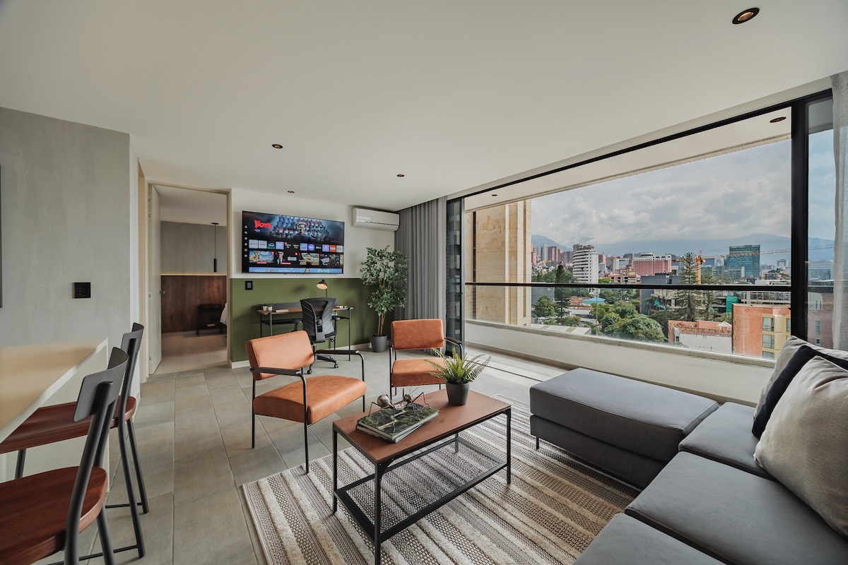 24階にあるこの豪華な1ベッドルームのアパートで、上空からメデジンを体験してください。プレミアムな仕上げ、スカイラインビュー、そして完全な快適さを備えています。プライベートホットタブ、広々としたリビングエリア、設備の整ったキッチン、5つ星のアメニティをお楽しみください。 -専用のホットバスタブ エアコン -遮光リモコン - 高速Wi-Fi/800MBs -プール+ジャグジー+トルコ風呂 - 無料のユニット内洗濯機/乾燥機 - 施設内レストラン&スパ - 24時間365日対応のフルジム ワークスペース 無料のコワーキングスペース 24時間365日対応のロビーとセキュリティ - Airbnb手数料なし