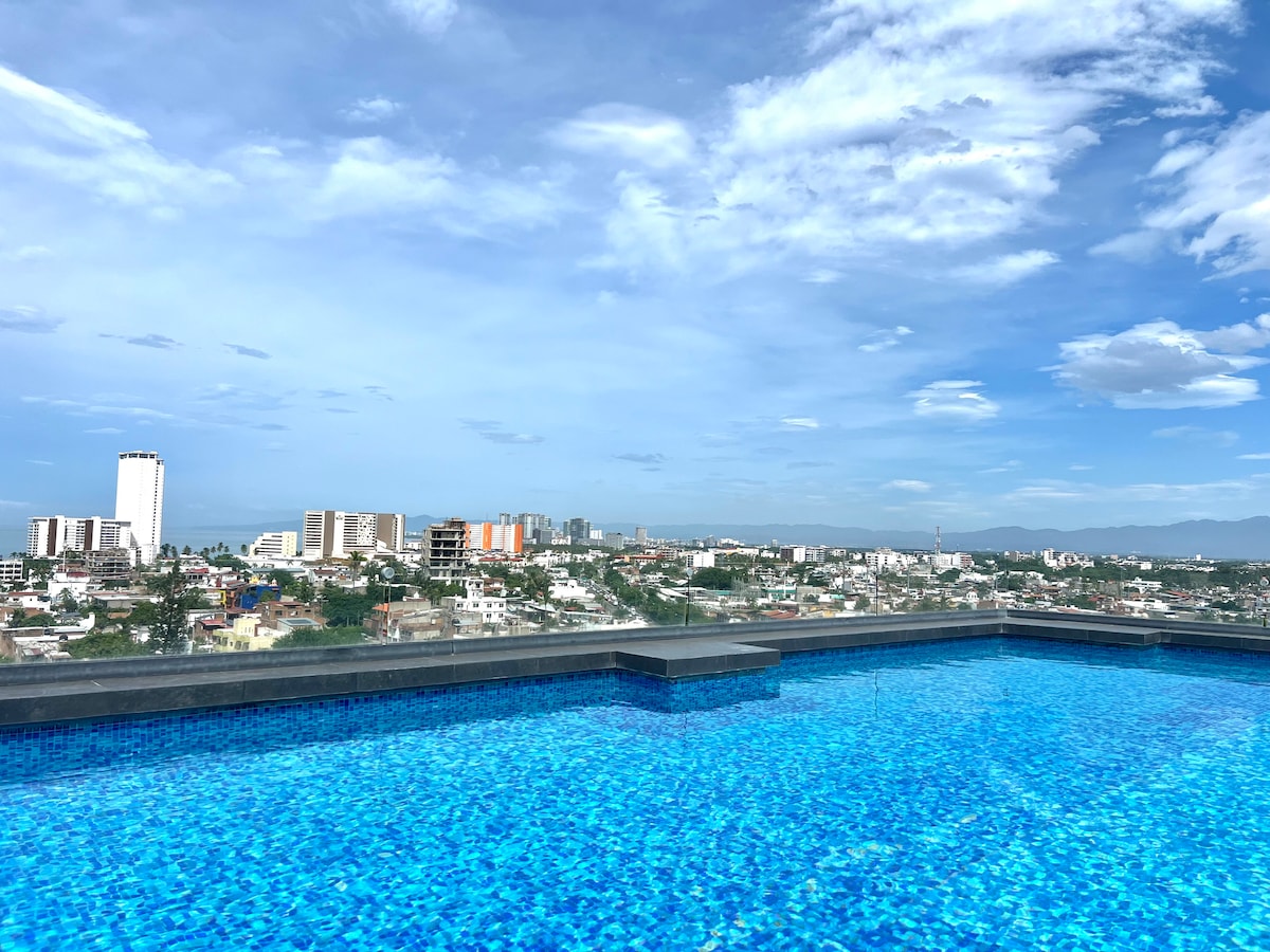 ベッドから素晴らしい景色をお楽しみください! 私たちのワンルームマンションは、プエルトバジャルタのラサロ・カルデナス地元しています。 5th de DiciembreとVersallesまで徒歩15分。 マレコンは徒歩30分です。 屋上には温水プールとジムがあります。 レンタル料金には、指定された安全な地下駐車場が含まれています。 ユニットには500 MbpsのWi-Fi、冷蔵庫/冷凍庫、洗濯機/乾燥機、オンデマンドの給湯があります。 キッチンの流し台にはフィルター水があります。 バルコニーの1つからは部分的なオーシャンビュー、両方からはマウンテンビューが見えます。
