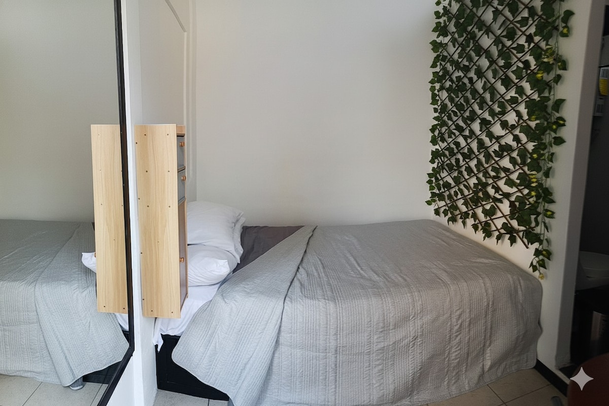 この静かで明るいロフトのシンプルさをお楽しみください。プラン・デ・アヤラのIMSS、グロレータ・デ・ラ・ルナ(公共交通機関の待ち合わせ場所)のすぐ近くにあり、プルマン・ドラゴンターミナルまで徒歩8分です。市内中心部は車で15分です。 ダブルベッドとソファベッドがあります。周りには木があり、2階にあります(螺旋階段で入ります)。独立した入り口と車1台分の駐車場があります。