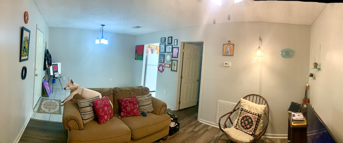 🙌🏻南部が大好きな人は?もちろん私です!🙌 世界中を旅した後、暖かい空気、フレンドリーな顔、南部のホスピタリティなど、ディープサウスへの深い愛情を育みました。 🩷この快適なコンドミニアムは、南部の魅力を称える大胆な色彩とアートで、その情熱を反映しています。 🚗キャンパスまで2マイル未満なので、短期滞在に最適です。 ゲストとして来て、家族として帰る。:)リピーターのゲストは大歓迎です! 南部の温かみとおもてなしを体験していただけるのが待ちきれません!