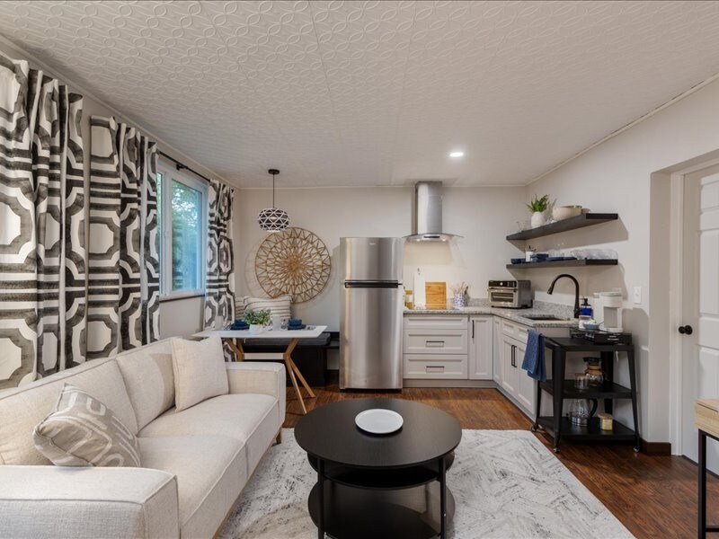 市内の中心部に位置するこちらの素晴らしいゲストハウスは、豪華さと快適さを兼ね備えており、都会の喧騒から逃れることができます。階段を上ると、息をのむようなシャンデリアが温かみと優雅さを演出しています。中に入ると、温かく抱きしめられるような空間が広がり、豪華なキングサイズのベッド、65インチのスマートテレビ、充実したキッチンが備わっています。洗練されたバスルームには、スタンドアップシャワーに加え、ランドリールームとリネンクローゼットがあり、さらに快適です。細部までこだわり、スタイリッシュで居心地の良い、忘れられない滞在をお届けします!