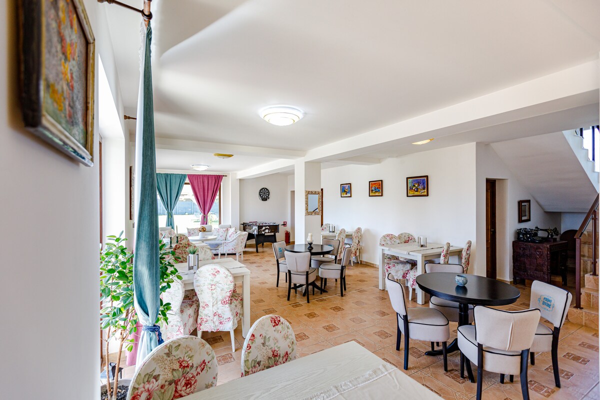 Situată la doar 2,5 km de forfota orașului Timișoara, vă punem la dispoziție 9 camere single, double, triple, toate fiind dotate cu frigidere, smart tv, aer condiționat, încălzire, balcon. Restaurant și pizzerie în incinta locației și bineînțeles parcare privată supravegheată video.