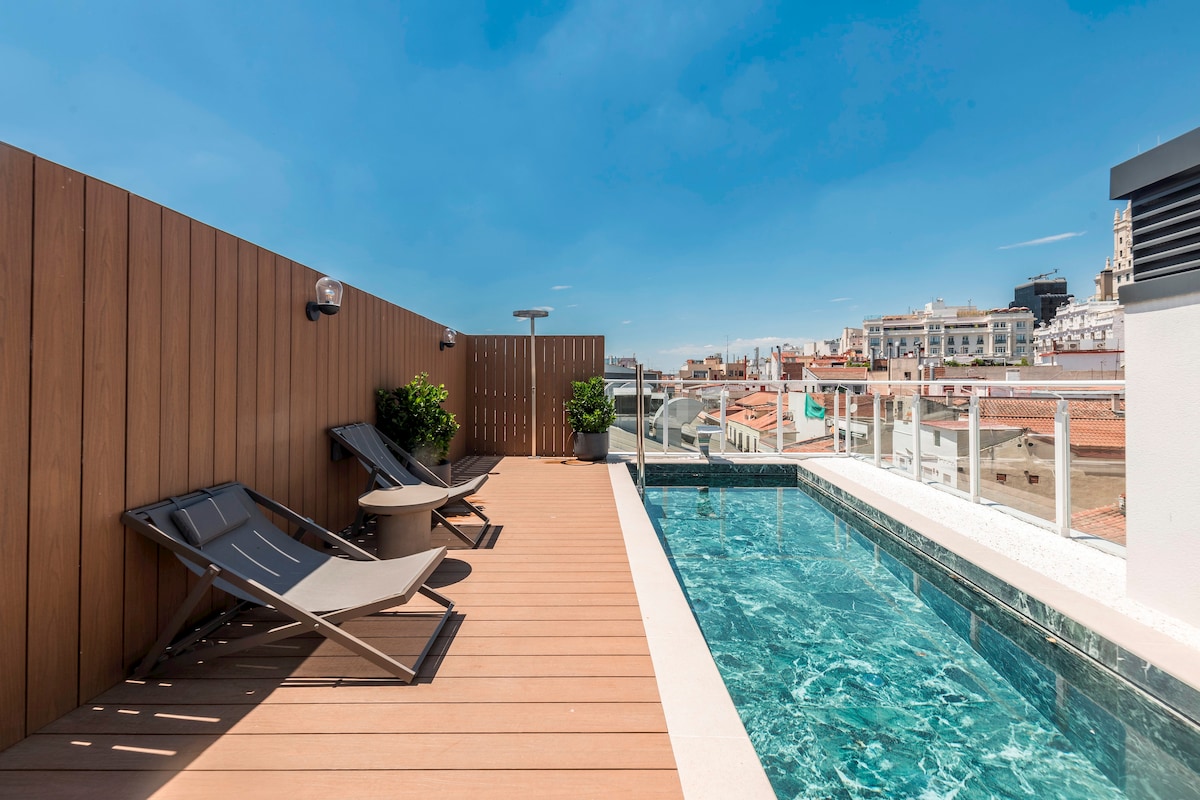 Experience the exclusivity of a whole mansion in Madrid's heart. This unique stay lets you enjoy a full building, with private terrace, jacuzzi, sauna, and solarium. A luxury refuge in a prime location, near Puerta del Sol, Plaza Mayor, Gran Vía, and the Royal Palace. Explore Madrid, from its traditional tapas and restaurants to the iconic Prado, Thyssen, and Reina Sofía museums, all from your private city haven.