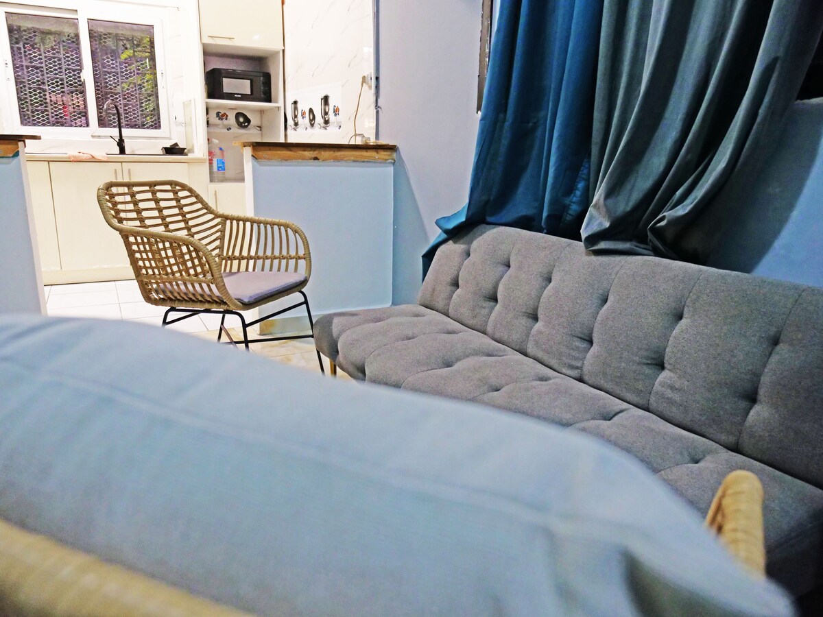 ユニークで静かで平和な宿泊施設。 魅力的なT2:エアコン付きの寝室1部屋、エアコン付きのリビングルーム、薄型テレビ、設備の整ったキッチン、エアフライヤー、電子レンジ、コーヒーメーカー、電気ケトル、冷蔵庫、バスルーム。 タオルとベッドリネンが用意されています。プライバシーを守るために、防音の宿泊施設にはラグーンとムツァンボロ島のパノラマビューと美しい日差しが見えるテラスがあります。 ビーチまで3分。