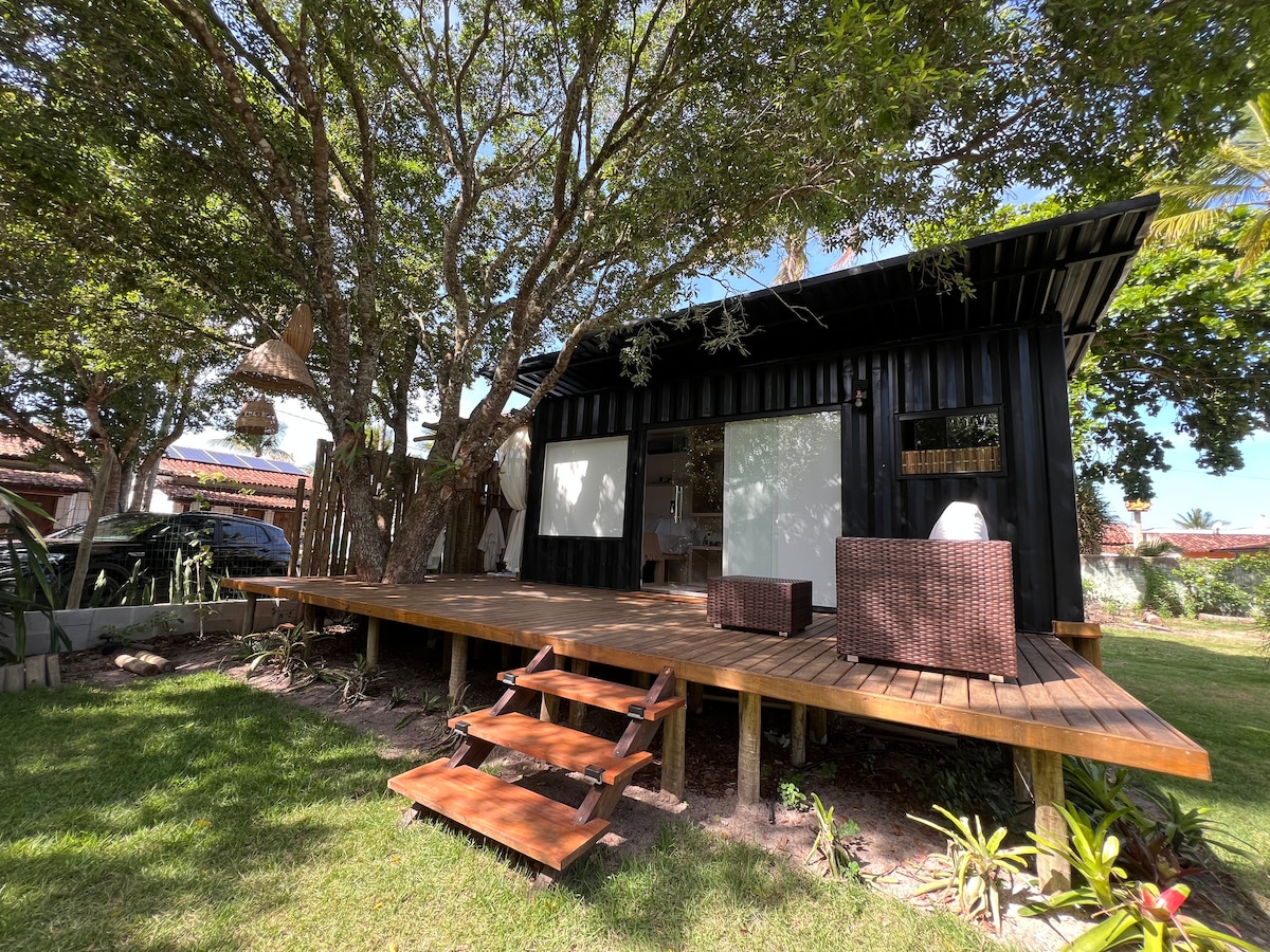 É uma hospedagem única, dentro da maior casa de forró pé de serra do Brasil o Burraco do Tatu. Meu quintal é o Paque estadual de Itaúnas, onde se pode caminhar, dar um mergulho no rio Itaúnas e fazer um passeio de caiaque. Não temos luxo algum mas aqui você tem um banho de ecologia e sustentabilidade. Temos um vale de Cidreira e capim limão. Não é somente uma cabana é uma imersão no universo do forró e na natureza.