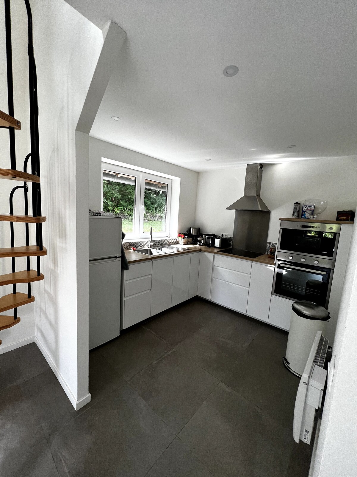 La Lanterneは、ノルマンディーのトゥルヌドスールセーヌ(ル・ヴォルドルイユ/ヴァル・ド・ルイユから4 kmの静かな村)のセーヌ川のほとりにある大きな家の美しい敷地内にある、明るくて光がたっぷり入るロフトタイプのコテージ(50㎡)です。 家は最近家具が揃えられ、設備が整っています。オープンプランキッチン、キングサイズのダブルベッドを備えた寝室、ソファ、デスクを備えた2つの広い部屋。ウォークインシャワー付きの専用バスルーム。豪華なインテリア。 平穏で魔法のような自然に近い環境です。