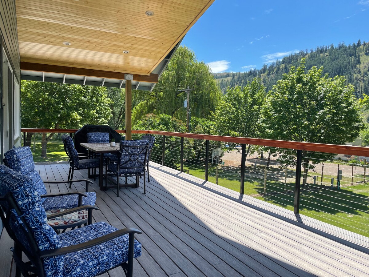 410 Bluff Street is the upstairs of a comfortable home overlooking the Chewuch River located three blocks from downtown Winthrop. It is a private and quiet space with large windows providing generous views of the river habitat. With a deck overlooking the river below, this space offers the unique combination of intimacy with nature and the convenience of town living. If you have children (or are 3+ travelers) please pay special attention to the information and requests noted below. Thank you!