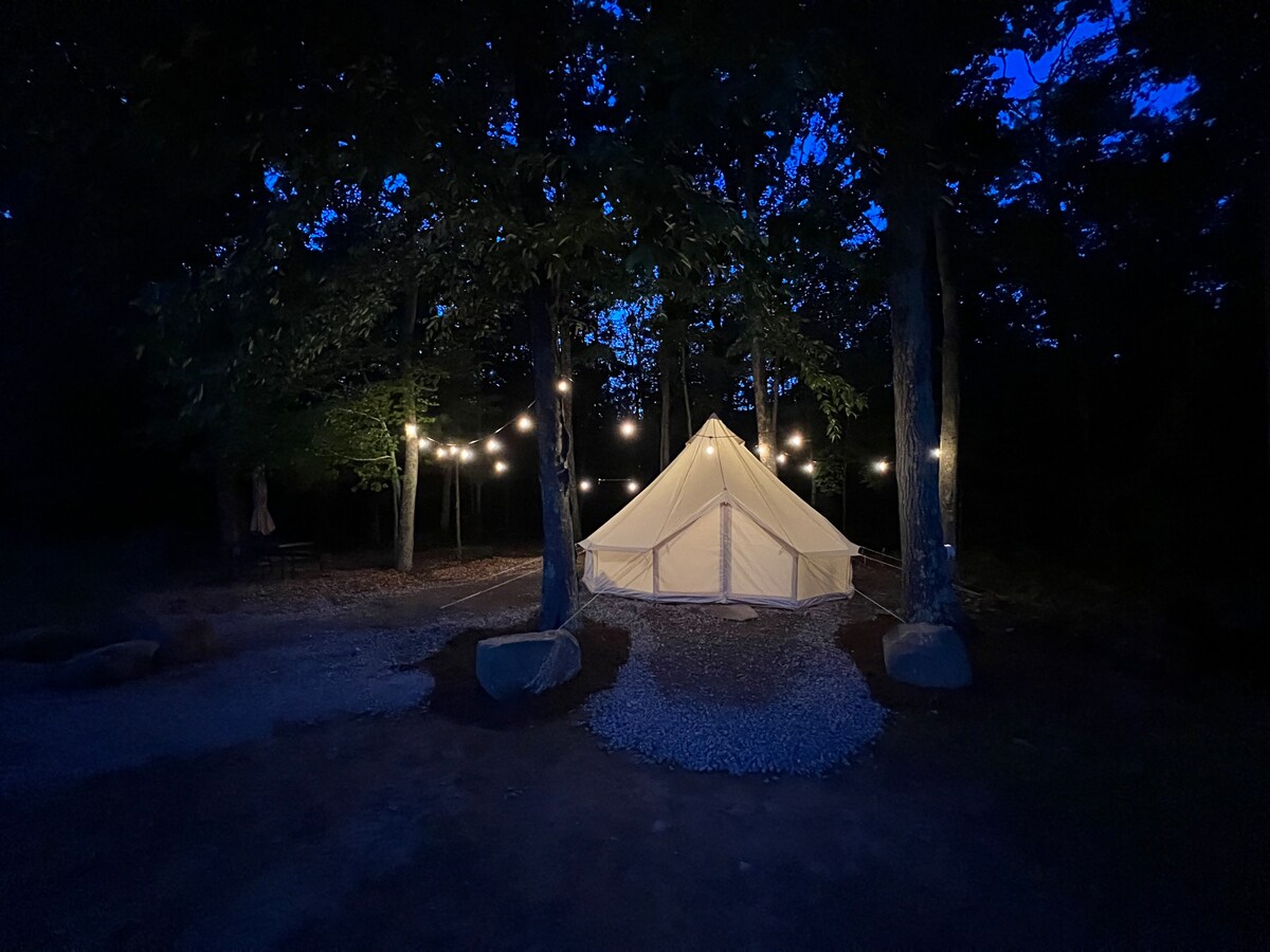 穏やかな人里離れた牧草地でグランピングしながら、ツリーラインに隠れている。 設定や降りる手間をかけずにキャンプ体験を楽しむのに最適な場所です。 ミニ冷蔵庫、焚き火台、キューリグを備えたトレンディな特大テントでの滞在を予約しましょう。 近くにはハイキングトレイルがあり、ソープストーン山に近く、釣りにぴったりの池があります。 この地域ではフレンドリーな犬がいます。 ご興味があれば、フィールドにレンタル用のキャンピングカーがあります