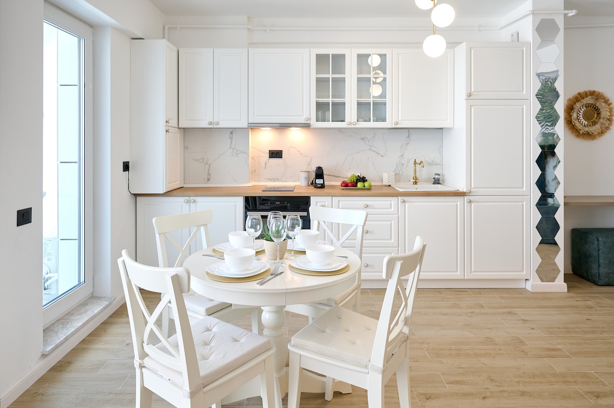 美しく装飾された2つの部屋、木のような雰囲気、さわやかな雰囲気を作り出すためのたくさんの植物が特徴の居心地の良いアパートへようこそ。 アパートは大人4名様と子供1名様が快適にご宿泊いただけます。 リビングルームのソファは拡張可能なだけでなく、独自のマットレスを備えたベッドに完全に変わります。 居心地の良いリビングスペース、木のような雰囲気、そして周りにある植物が、街を探索した後やビーチでリラックスした後にゆったりと休息するのに最適なアパートです。
