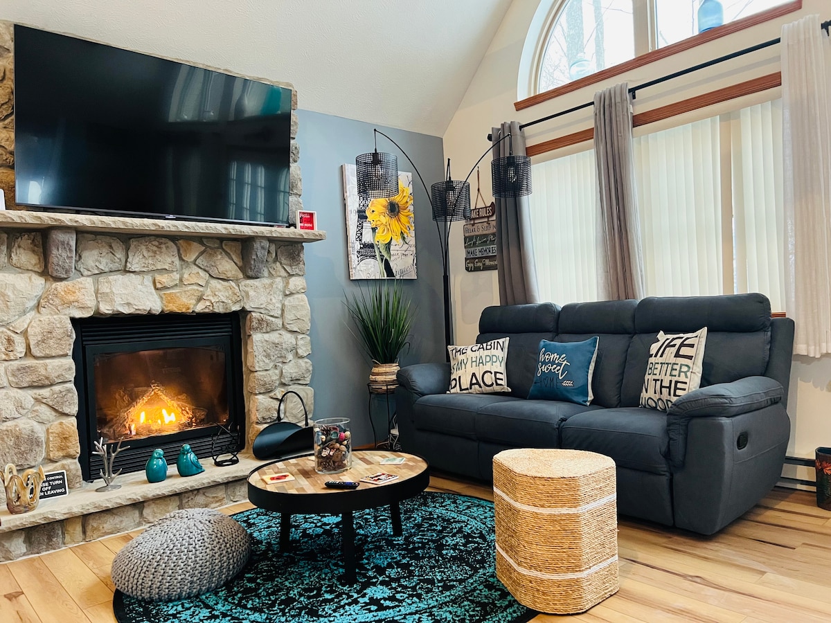 â 10-person hot tub â Pool table â Community Fees included (see listing) â King bed â Ping-pong table topper â Arcade infinite game table â 440 Mbps WiFi *âLovely place and amazing hostess.â â Smart TVs â Pet friendly (see listing) â BBQ (gas provided) â Fully equipped kitchen â On-site washer + dryer â Fireplace â 24/7 security â 15-30 mins- skiing, snow tubing, indoor water parks: Camelback, Kalahari, Jack Frost & Big Boulder ski mountains; Pocono Premium Outlets, Mount Airy Casino, etc.