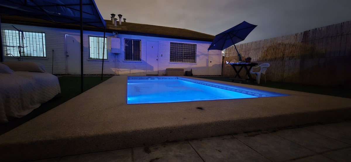 *料金は1人あたりのものです* リラックスしてください。ラ・エルラドゥーラビーチから5分の静かな場所で、スーパーマーケットや薬局の近くにあります。パティオと屋外ダイニングスペース、ランドリーサービス、独立した鍵と駐車場、2人または3人用のコンバーチブル、ALEXAサポートサービス、Wi-Fi、ケーブルテレビ、ケトル、冷蔵庫、電気オーブン、食器、カップ、紅茶、コーヒー、甘味料、