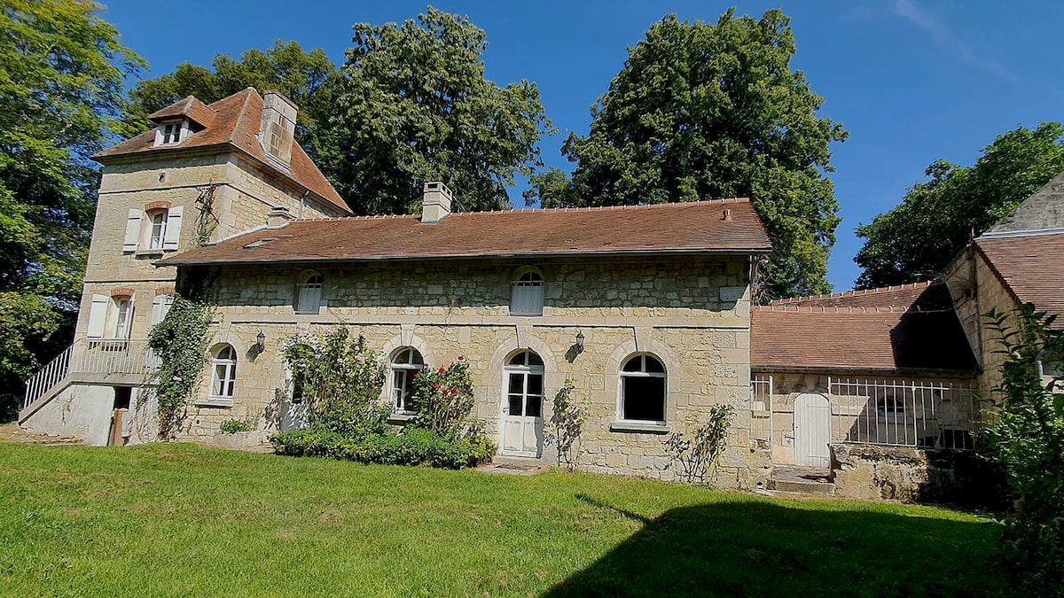 La Métairie - Charmante maison au calme, à 1h de Paris (95 km) et 45 min de Reims - 02600 LONGPONT - 150 m² - Grande pièce à vivre, confortable. 2 étages, 5 chbs, 15 couchages (90x190) : 2 chbs doubles (lits jumeaux), 1 chbre 3 lits, 2 chbre 4 lits. LINGE FOURNI (lits non faits) 3 sdb, 3 wc Poele à bois. Wifi. Cuisine équipée : gd réfrigérateur, four, lave-vaisselle. Lave-linge Gd jardin clos en bord de rivière. Environnement très calme, verdure Attenant à la forêt de Villers-Cotterêts