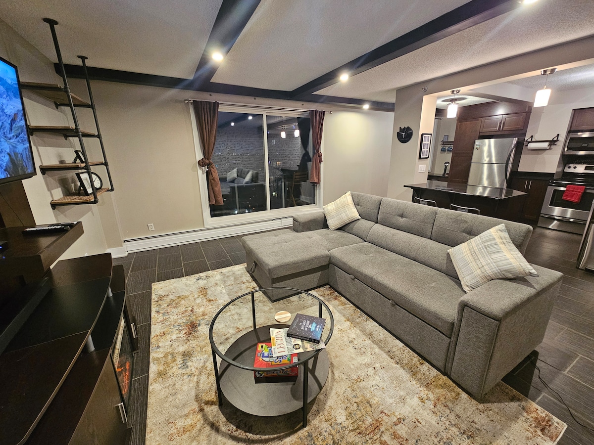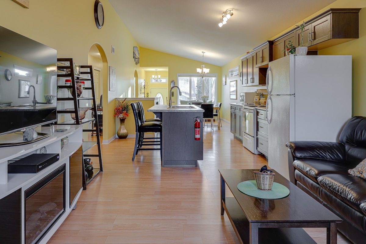 中心部に位置する我が家へようこそ。 忙しい1日の後はリラックスして足を伸ばしたり、大画面ホームシアターで映画を見たり、暖炉の前で本を読んだりしてください。 清潔でモダンなスイートには、キッチン、ダイニングエリア、寝室、リビングルームが備わっています。 川、UofS、ロイヤル大学病院、食料品店、Merlis Belsher Place、8th Streetショッピングエリアまで徒歩圏内にあります。 ダウンタウンまで車でわずか5分です。