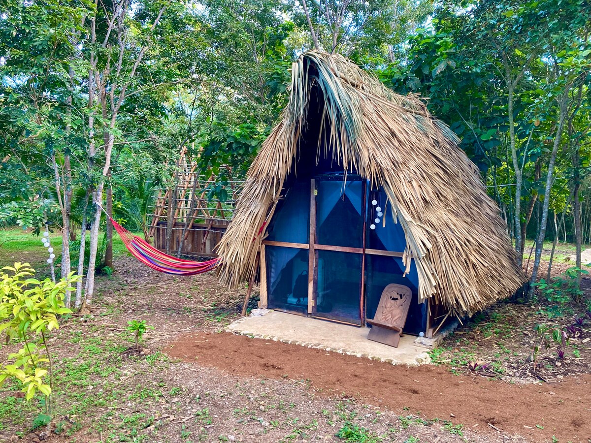 伝統的な茅葺きと天然素材で建てられたCinnamon Cabanaは、シンプルで静か、そして自然に本当に近い、ジャングルでの没入型の滞在を提供します。いくつかのモダンな快適さも備えています。鳥のさえずりで目覚め、ハンモックでくつろぎ、庭園、果物、スパイスに囲まれた家族経営の農家でゆっくり過ごしましょう。国境の寄り道(メキシコまで約30分)や静かなリトリートに最適です。コロサルまで15 ~20分。屋根付きの共用キッチンと屋外バスルームをご利用いただけます。