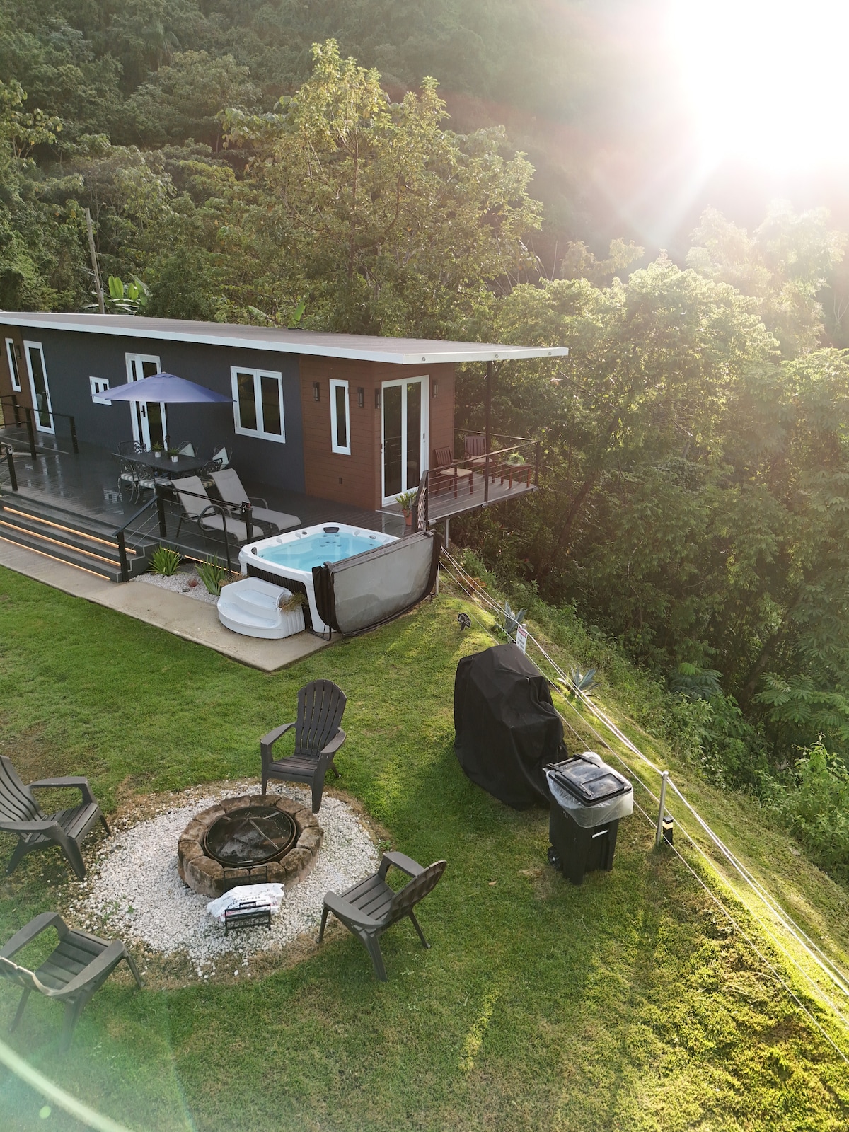 プエルトリコの魅力溢れる別の場所を探索しましょう。 この10 x 16のタイニーハウスでは、自然とのつながりを取り戻すことができます。 海と山の景色を同時にお楽しみいただけます。クイーンベッド1台、専用の屋内バスルーム、お湯、ジャグジー、設備の整ったキッチン。 ソーラーパネルからのエネルギーがあります。 Wi-Fiサービス、スマートテレビ、専用バルコニー。 美しい屋外スペース、座席エリア、ジャグジー、安全な荷物預かり所、専用駐車場があります。この物件は私の家の2階にあります。