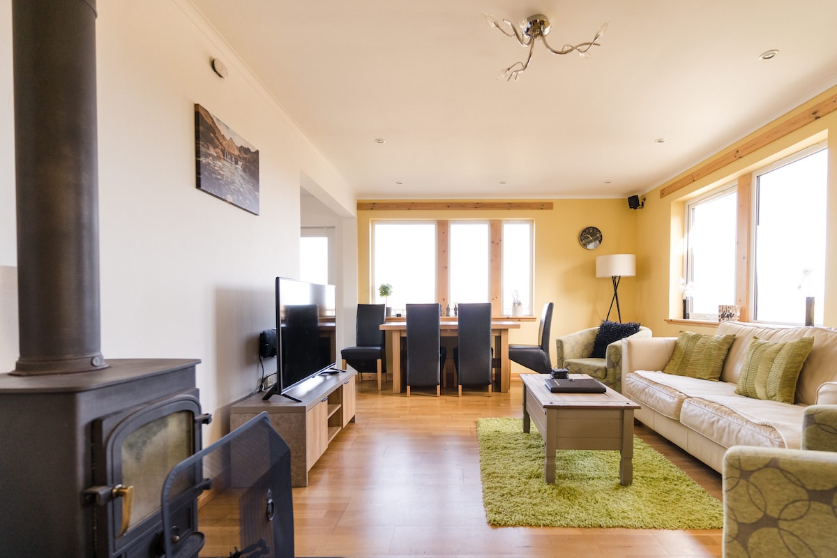This 5* luxurious architect-designed property has panoramic floor-to-ceiling windows overlooking the bay and at high tide you'll be just metres from the water's edge. Watch the teeming birdlife on the shore , enjoy the cosy woodburning stove in winter, and look out for the Northern Lights from the deck. With the shops and restaurants of Broadford, Skye's second largest village within walking distance, its the perfect base to explore Skye and Lochalsh.