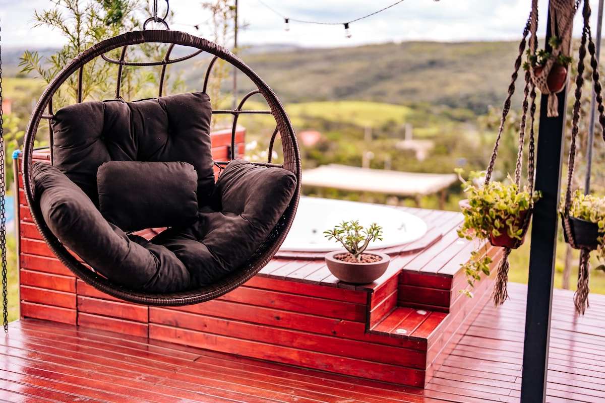 A taxa de serviço fica por nossa conta! Espaço de autocuidado, paz e relax preparado com muito carinho para receber você! Loft ideal para 2 pessoas: - quarto/cama queen, - ar-condicionado, - cozinha completa, - 1 banheiro, - hidromassagem com ducha externa. - disponibilizamos roupão a partir de duas diárias. Área comum: - estacionamento, - área de lazer, - piscina semi-aquecida, - churrasqueira (mediante taxa de uso). A 1km do centro de Pirenópolis.
