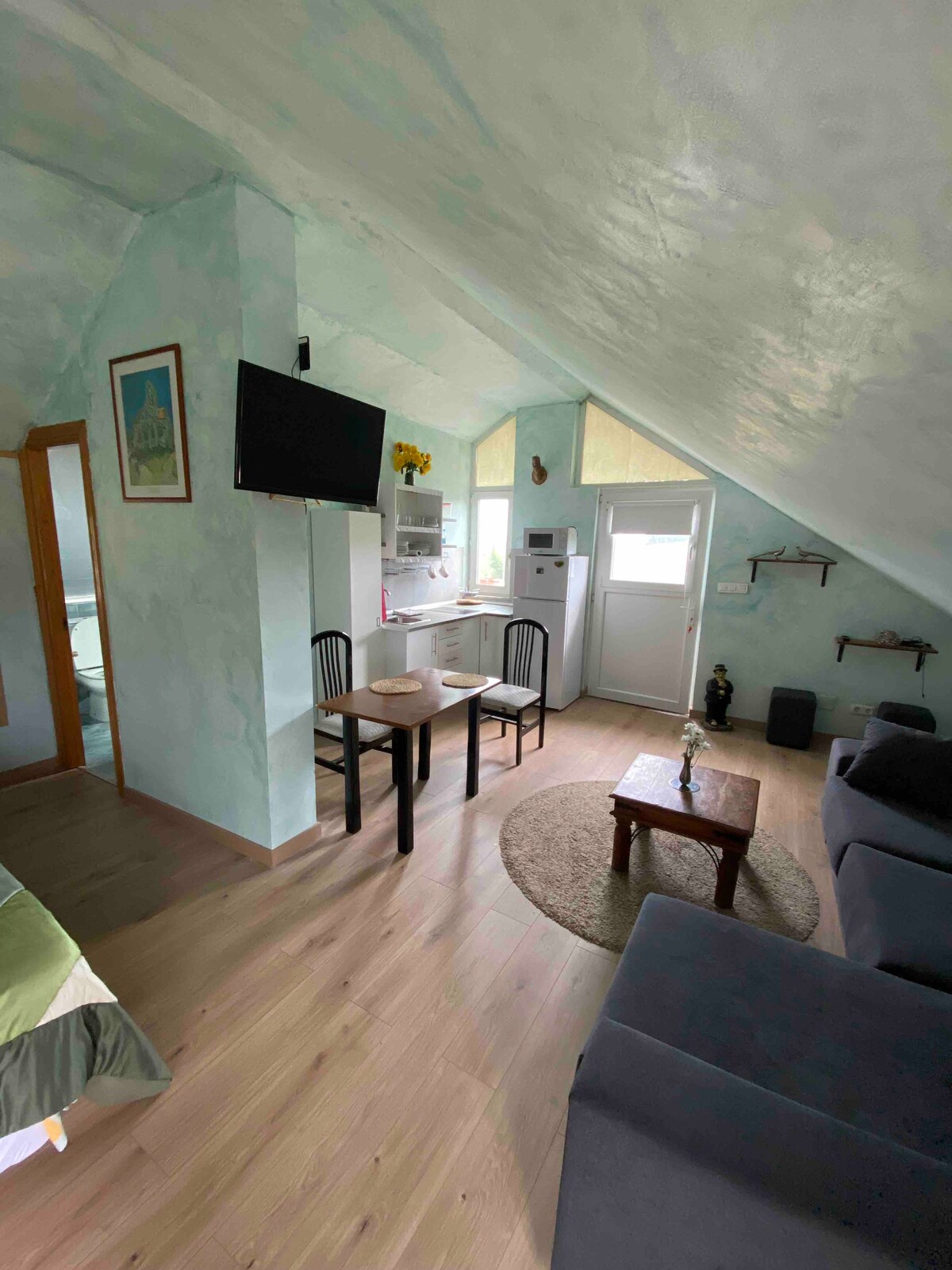 この宿泊施設は、高級別荘の最上階にある完全に独立したアパートです。2つのベッドルーム、バスルーム、リビングルーム、キッチンがあり、すべてが豪華に仕上げられています。家全体が外側に面しており、大きな窓から美しい景色が見えます。 バスルームには、リラックスできるスパタイプのバスタブがあります。