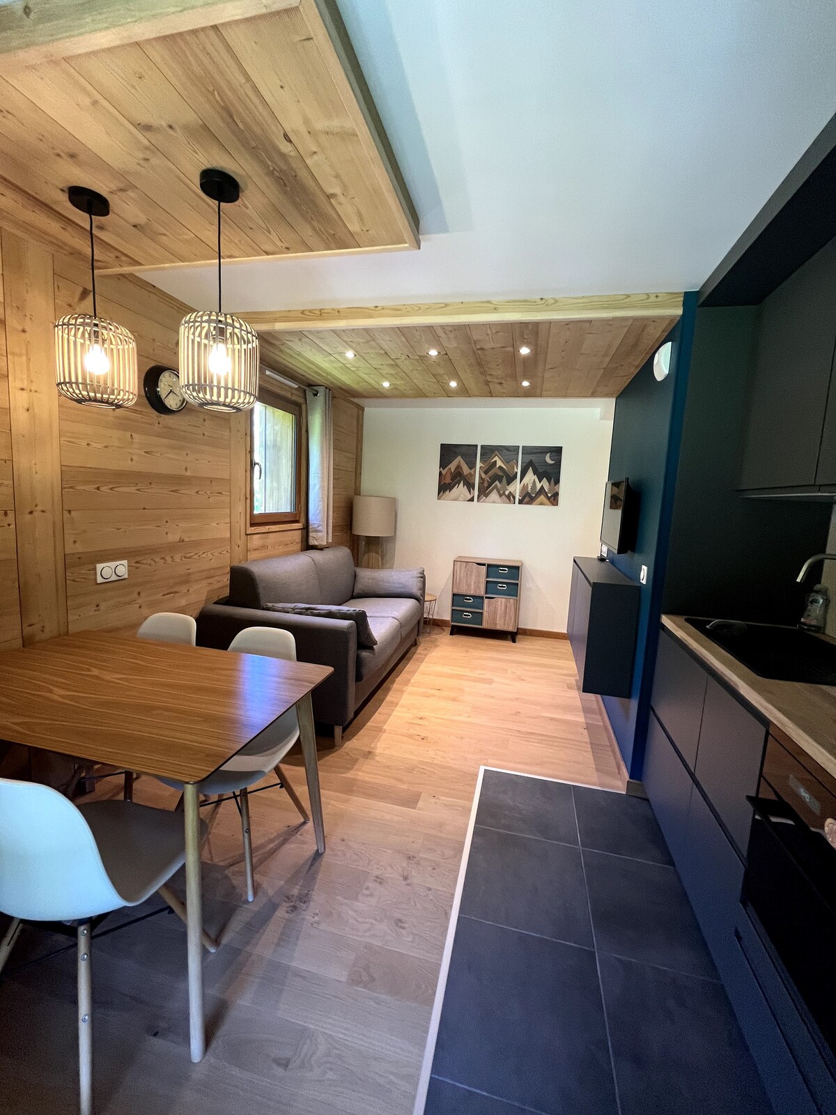 主な住居のシャレータイプの建物内にある、テラス付きの独立したアパートメント。 山岳スポーツやパン屋やスーパーマーケットのある村の中心地に近い。 ご滞在中は専用の駐車スペースをご利用いただけます。 モンブランを望む静かな環境。 (オニオンの市営プールは2025年夏に改修のため閉鎖されます)