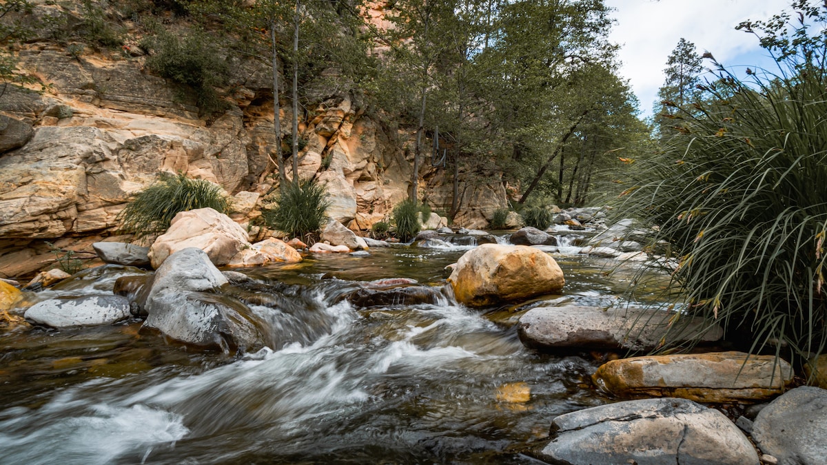 オーククリークのソルコテージで街を離れましょう。ハイキング、水泳、釣り、またはオーククリークキャニオンとセドナの静けさを楽しむことができます。 •カスタムメイドの明るいコテージ •専用バルコニーからの素晴らしい景色 •静かなエリアにあるクリークへのアクセス •人気のトレイルまで数分 •地元のカフェまで徒歩で行けます • 設備の整ったキッチン •豪華なキングサイズのベッドルームとエンスイートバスルーム •高効率の洗濯機と乾燥機 •エアコン、床暖房 •キーパッドチェックイン/チェックアウト時の手間なし •駐車スペース1台分 •セドナのアップタウンまで10分